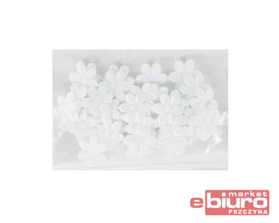 Aplikacje ażurowe kwiatek pełny średniIdealne do różnego rodzaju dekoracji i ozdób.Zapakowane w opakowanie foliowe.Wymiary: średnica kwiatka ok. 13mm, 1MBKolor: biały