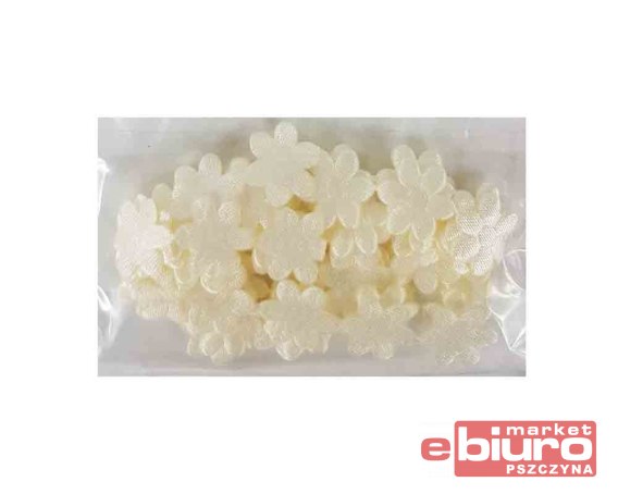 Aplikacje kwiatek pełny średniIdealne do różnego rodzaju dekoracji i ozdób.Zapakowane w opakowanie foliowe.Wymiary: średnica kwiatka ok. 13mm, 1MBKolor: kremowy