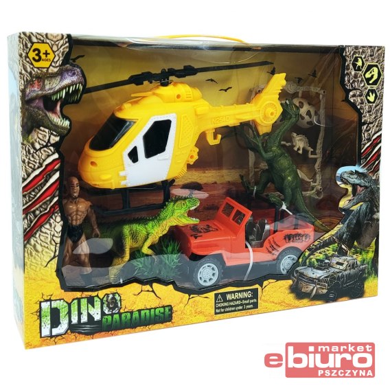 Zestaw Dino Paradise figurkami oraz helikopterem i autem.