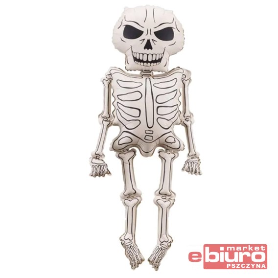 Balon przedstawia pełny kościotrup w kolorze kremowym z czarnymi elementami, które podkreślają detale kości, nadając mu realistyczny, a jednocześnie stylizowany wygląd.
