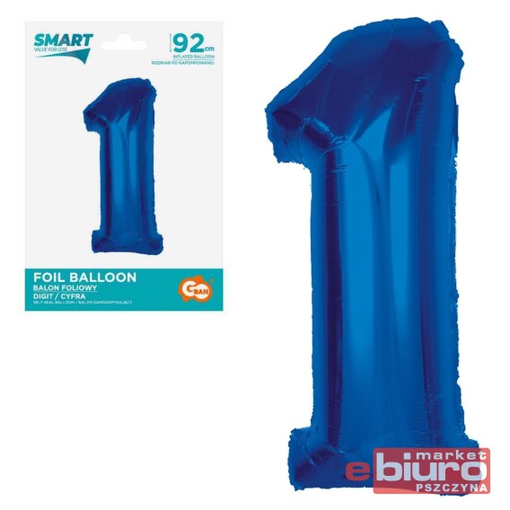 BALON FOLIOWY SMART CYFRA 1 NIEBIESKA 92CM GODAN