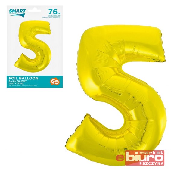 BALON FOLIOWY SMART "CYFRA 5" ZŁOTA 76CM