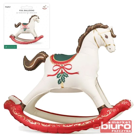 BALON FOLIOWY ŚWIĄTECZNY KOŃ NA BIEGUNACH MIX PAR