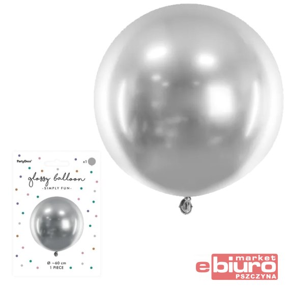BALON OKRĄGŁY GLOSSY 60CM SREBRNY PARTYDECO