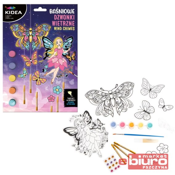 Zaprojektuj swoje własne dzwonki z tekturowym szablonem wróżki i pięknego motylka otoczonymi baśniowymi elementami, które pięknie ozdobią pokój.