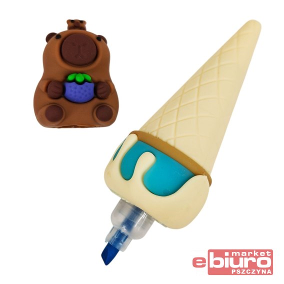 Zakreślacz o zabawnym, atrakcyjnym designie — na górze znajduje się dekoracyjna figurka w postaci kapibary.