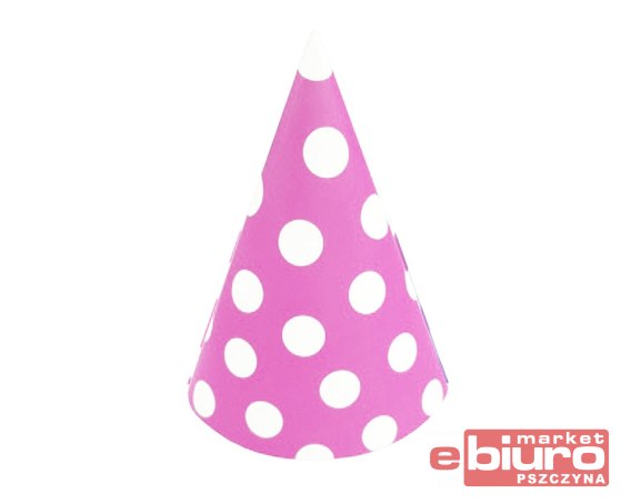Różowe, papierowe czapeczki w białe groszki