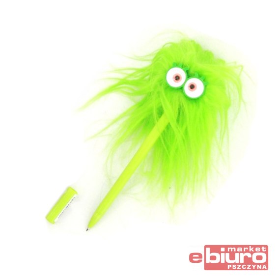 Ozdobny długopis z pomponem oraz wielkimi oczami.