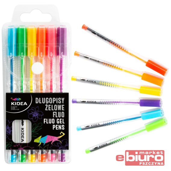 DŁUGOPISY ŻELOWE FLUO A 6 KOLORÓW KIDEA