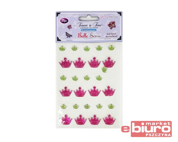 Dżety w kształcie koron. Mix kolorów. Idealne do tworzenia różnego rodzaju dekoracji i ozdób. Opakowanie zawiera 27 sztuk.