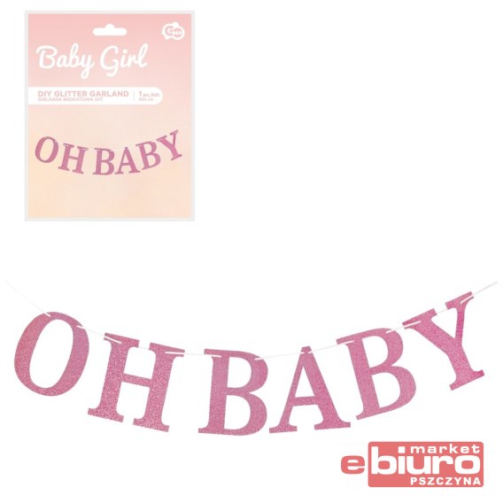 Oprószona różowym brokatem papierowa girlanda z kolekcji BabyBoy z napisem OH BABY.