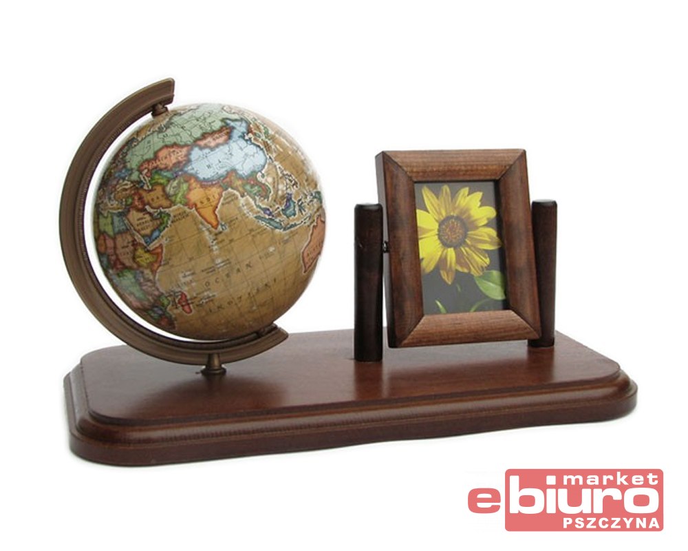 Zestaw globus + ramka na zdjęcie na drewnianej podstawce.