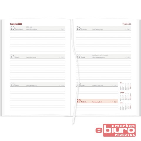 Podręczny terminarz w dobrej, sprawdzonej formie z praktycznym i przejrzystym układem kalendarium w oprawie Vivella.