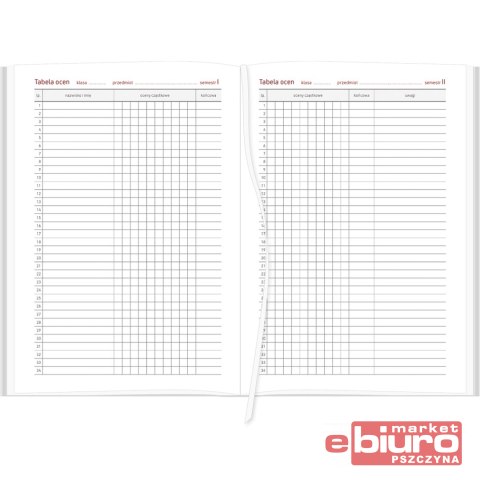 Drukowany na białym papierze; bloki terminarza szyte nićmi; kapitałka i tasiemka białe.