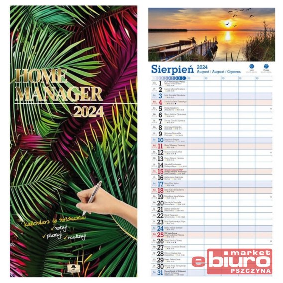 Kalendarz ścienny paskowy szeroki drukowany jednostronnie.