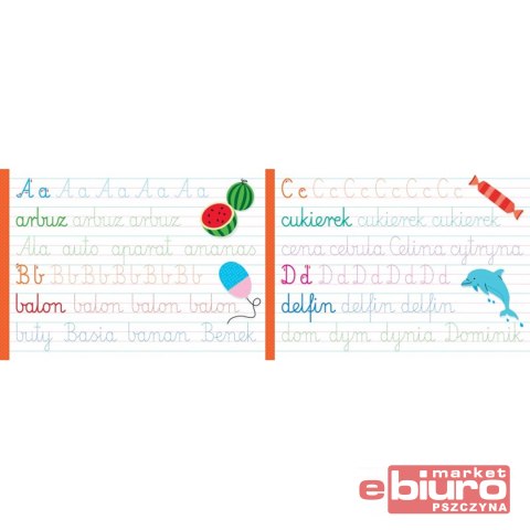 Zaczynając od wzorów literopodobnych, a następnie przechodząc do liter i wyrazów, dziecko nabiera wprawy w pisaniu i wypracowuje ładny charakter pisma.