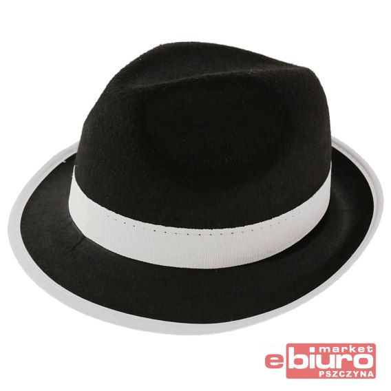 KAPELUSZ GANGSTER CZARNY Z BIAŁĄ LAMÓWKĄ GODAN