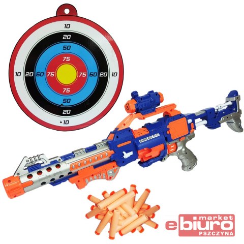 Wielką zaletą karabinu jest obrotowy duży magazynek mieszczący aż 10 piankowych pocisków.