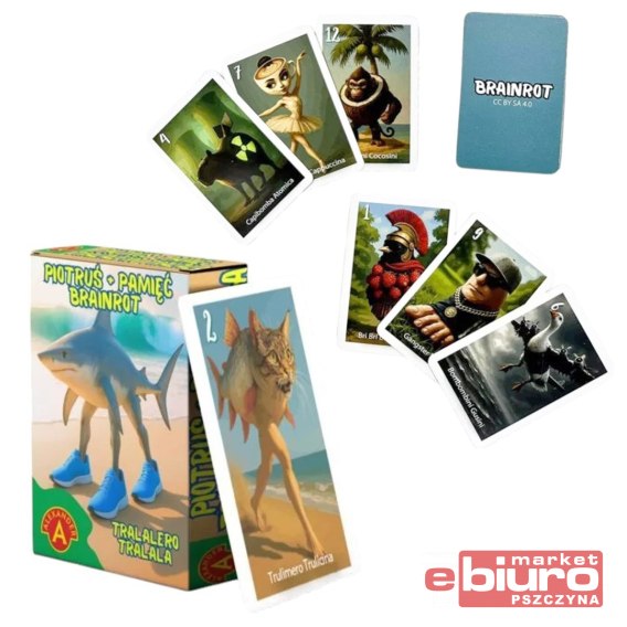 W tej talii Piotrusiem jest Tralalero Tralala - rekin na trzech nogach w butach, który potrafi śpiewać, tańczyć i... zniknąć w eksplozji! Jeśli zostaniesz z nim na koniec - gra skończona, a Ty musisz zatańczyć jego taniec porażki.