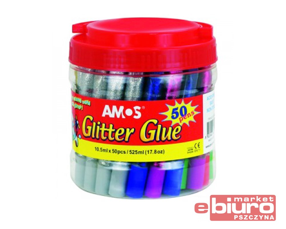 Klej z brokatem AMOS GCL 10BK50 - 10,5ml x 50 kolorów.