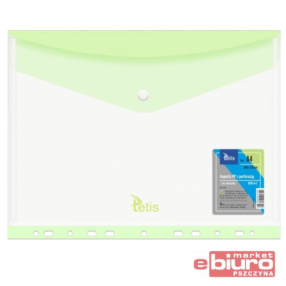KOPERTA PP NA ZATRZASK Z PERFORACJĄ A4 ZIELONA BT614-Z TETIS
