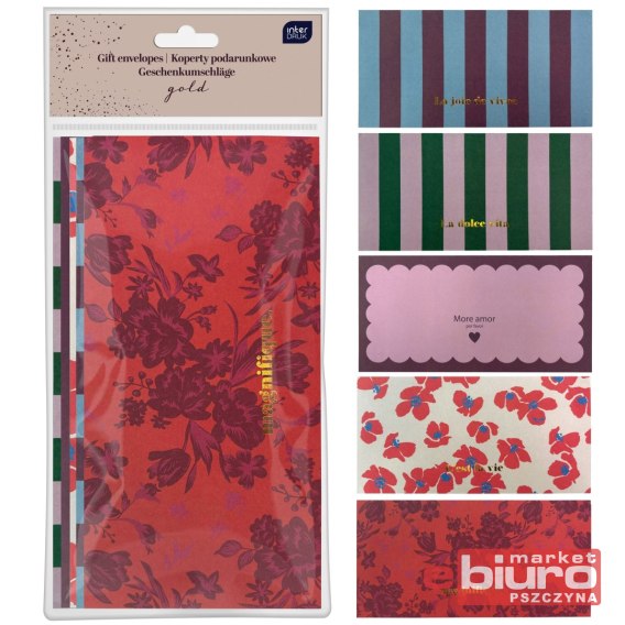 Zestaw kopert podarunkowych Interdruk GOLD 22x11cm - 5 szt.