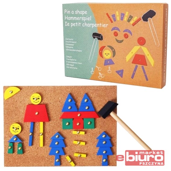 Korkowa przybijanka z drewnianymi kształtami i pinezkami to świetny sposób na zabawę połączoną z nauką.