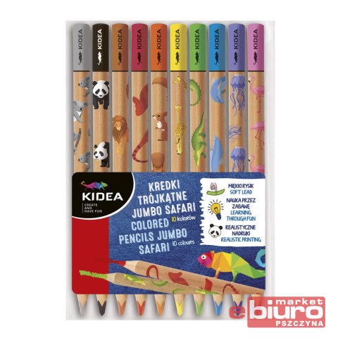 KREDKI TRÓJKĄTNE JUMBO SAFARI 10 KOL KIDEA