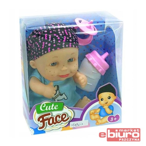 Lalka bobas z piegami i akcesoriami.Zabawka wyposażona w dźwięk.Zabawka która, zapewni dużo świetnej zabawy.Zabawka zapakowana w kartonowe opakowanie z przezroczystym okienkiem.Zabawka działa na baterie. Rozmiar: 15x17x9 cm.Produkt przeznaczony dla dzieci od 3 lat.