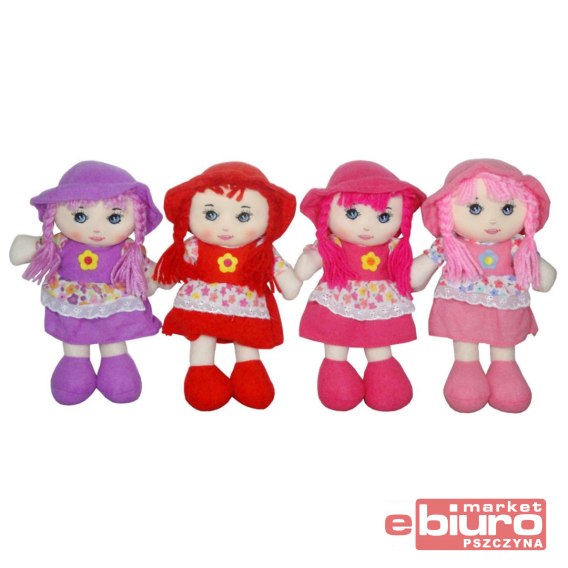 Lalka szmacianka w kapelusiku z sukienką w kwiatki.