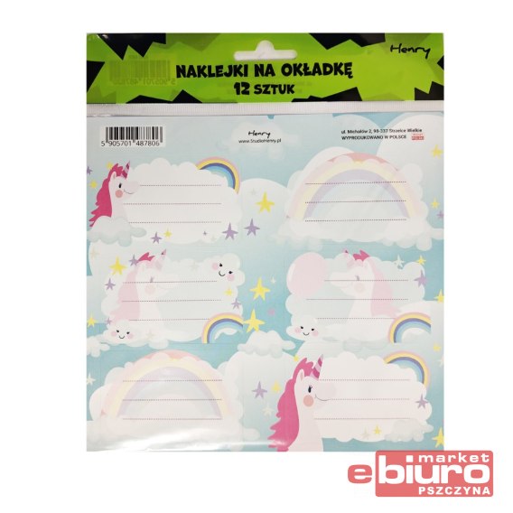 NAKLEJKI NA OKŁADKĘ 2 12SZT JEDNOROŻEC HENRY