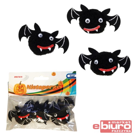 OZDOBNE POMPONY NIETOPERZE HALLOWEEN marki BREWIS.