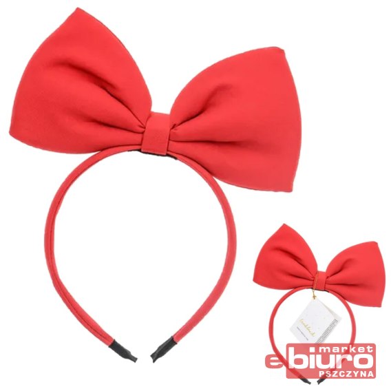 Elegancka opaska Kokarda świąteczna w intensywnym kolorze czerwonym o wymiarach około 18 x 21 cm.