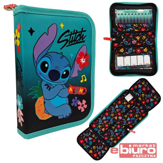 Piórnik Dwuklapkowy Bez Wyposażenia Stitch Mint Aloha.