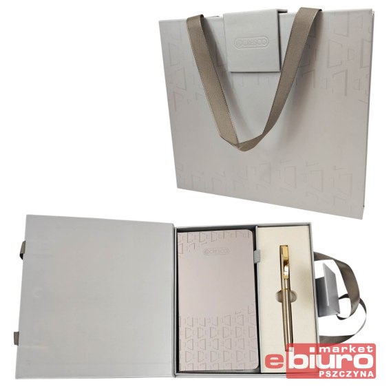 Komplet zawiera notes z gumką i wstążką oraz eleganckie pióro wieczne CLASSIC.