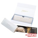 Tłokowy system napełniania pozwala na swobodny dobór atramentu, a harmonijne połączenie pastelowego błękitu z kremowymi i złotymi akcentami podkreśla jego ekskluzywny charakter.