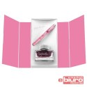 Pióro, należące do kategorii FWI (Fine Writing Instruments), posiada tłokowy system napełniania, srebrną stalówkę i eleganckie srebrne wykończenia, a jego półprzezroczysty różowy korpus inspirowany kamieniem szlachetnym nadaje mu wyjątkowy charakter.