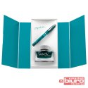 Pióro, należące do prestiżowej kategorii FWI (Fine Writing Instruments), zachwyca półprzezroczystym turkusowym korpusem, który mieni się pod wpływem światła, oraz srebrnymi wykończeniami, podkreślającymi jego luksusowy charakter.