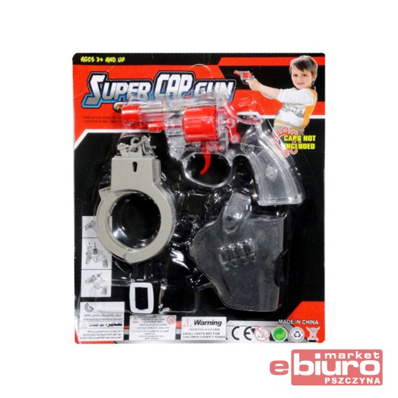 Zabawka pistolet na spłonkę w zestawie wraz z kajdankami.