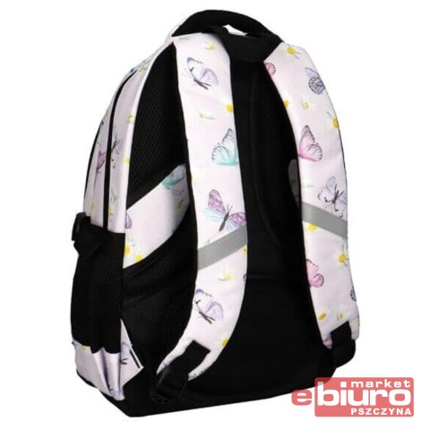 wyprofilowany, usztywniony tył plecaka zapewnia ochronę kręgosłupa dziecka