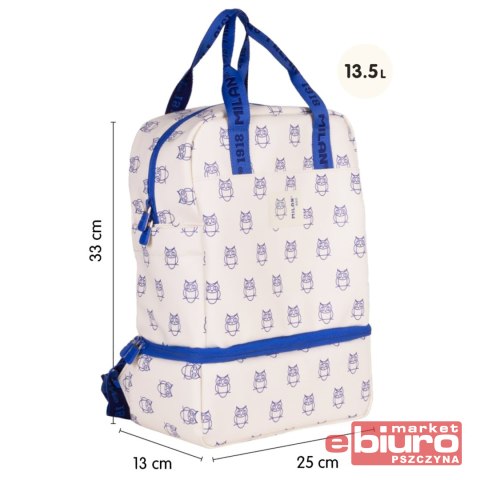 Plecak szkolny, prostokątny z dolną komorą izolowaną termicznie (zimno/ciepło) dla lepszego przechowywania żywności, o pojemności 2 l.