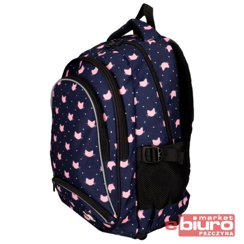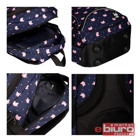 Funkcjonalny układ plecaka: pojemna komora główna, dwie mniejsze komory, kieszonka na zamek a w środku dodatkowa kieszonka oraz przegroda mieszcząca format A4 - powoduje, że plecak mimo iż dopasowany do wzrostu małych dzieci, jest jednocześnie bardzo pojemny.