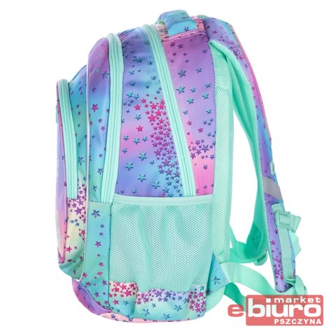 Plecak wyróżnia się wielobarwnym wzorek, który spodoba się dziewczynkom.