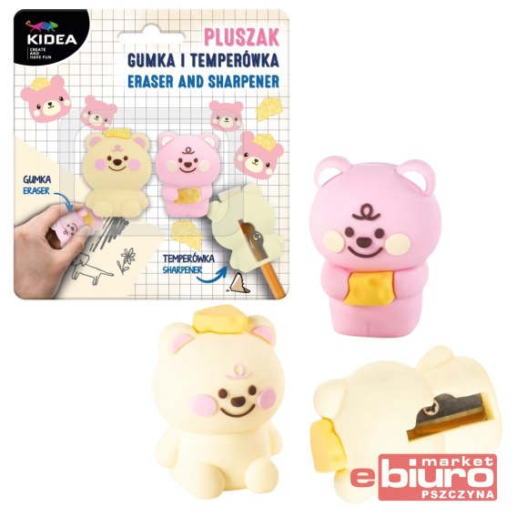 Zestaw zawiera gumkę do ścierania i temperówkę, które wyglądają jak słodkie pluszaki.