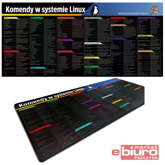 PODKŁADKA NA BIURKO MAŁA 59,1X27 KOMENDY W LINUX
