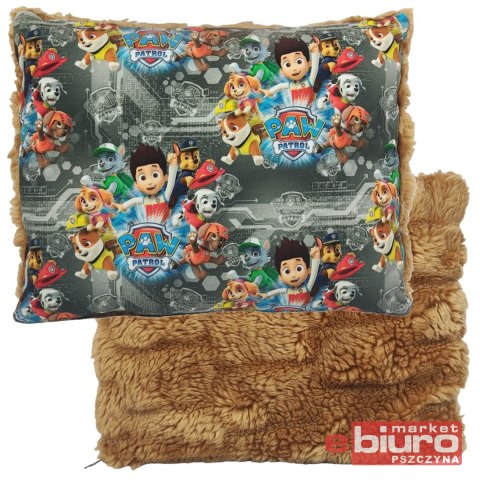 Pierwsza strona z motywem Psi Patrol, druga strona z miękkim pluszem.