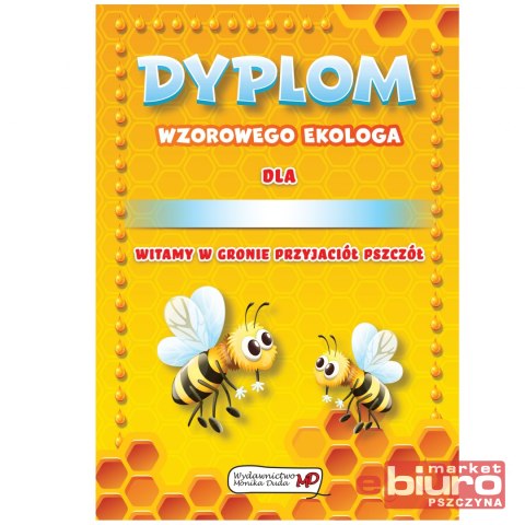 W środku wkładka z dyplomem dla tych co wzorowo dbają o ochronę pszczół.