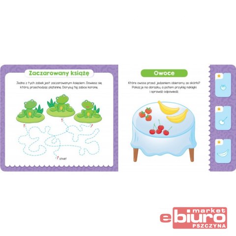 Dostosowane do wieku zadania zainteresują maluchy i zapewnią im rozwijającą zabawę, a możliwość sprawdzenia swoich odpowiedzi za pomocą kolorowych naklejek sprawi małym quizowiczom dużo radości.