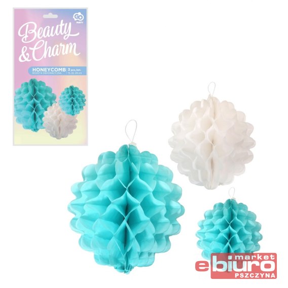 Opakowanie zawiera 3 papierowe rozety kule o wymiarach: 15, 22, 29 cm, co pozwoli na stworzenie wielu pięknych dekoracji.