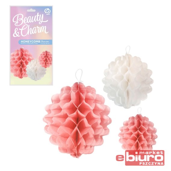 Opakowanie zawiera 3 papierowe rozety kule o wymiarach: 15, 22, 29 cm, co pozwoli na stworzenie wielu pięknych dekoracji.
